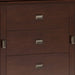 - Features two (2) top drawers with metal glides, and two (2) lower doors with tempered glass that open to large storage spaces with one (1) shelf each.