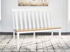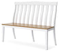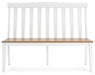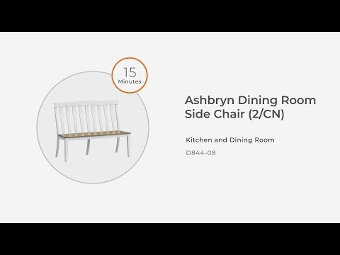 Casual style with substance. This double dining chair's two-tone finish of classic white and butcher block oak veneer adds a relaxed vibe to a delicious design. The curved shape of its bent slat-back frame offers a sense of modern farmhouse style, while the contoured seat adds comfort. Sit back and cozy up in charmingly fine fashion in your informal dining room or eat-in kitchen.