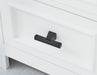 - Drawer pulls and metal window sash details with matte black finish