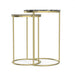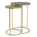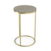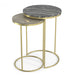 - Hand-finished metal base in Gold and two contrasting Marble tabletops, one in Grey, the other in Natural.