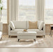 • The large, square throw pillows and 2 loose, reversible, extra-thick back cushions are stuffed with a combination of feather and fiber filling for a softer feel, while the armrests are covered in foam padding for a cozy seating experience.