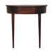 - Solid wood Backless Mounted Chestnut Console with Drawer - This minimalist console table, crafted from 100% solid mango wood in a chestnut finish, features a space-saving design with only front legs, allowing it to lean or mount against a wall. It includes a handy drawer for storing essentials, making it a stylish and practical addition to any room.