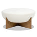 Bali - Round Upholstered Ottoman With Natural Base - Ivory White
