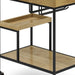 - Features a tray top, middle shelf, open bottom shelf, two racks for hanging glasses, four caster wheels – two that lock and handle/pull