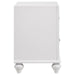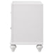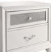 Bring a bit of glam and glitz into your personal space. This gorgeous nightstand is embellished with touches of sparkle to add a pop of pizzazz to any bedroom.The faceted crystal hardware glistens and gleams. Equipped with two drawers for your storage convenience, this stunning, modern nightstand keeps a bedside organized in style.