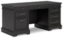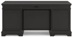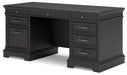 Make a style statement with this home office desk. Its traditional design is updated with an on trend vintage black finish. The desk's seven storage drawers and single file drawer add up to a well-organized workspace.