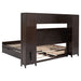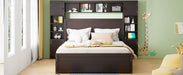 Queen Size Bed With All In One Cabinet, Shelf And Sockets, Twin Long Trundle - Espresso