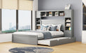 Queen Size Bed With All In One Cabinet, Shelf And Sockets, Twin Long Trundle - Gray