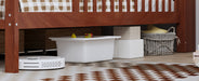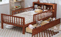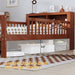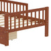 Twin Size Bed With Headboard Storage Rack, 2 Under Bed Drawers, 3 - Side Guardrails For Safety And Security - Walnut