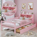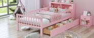 Twin Size Bed With Headboard Storage Rack, 2 Under Bed Drawers, 3 - Side Guardrails For Safety And Security - Pink