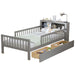 Twin Size Bed With Headboard Storage Rack, 2 Under Bed Drawers, 3 - Side Guardrails For Safety And Security - Gray