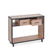 • KD, Rectangular Console Table Storage: 2 Drw, 3 Open Compartments (2 Top & Bottom Wood Shelf) Features: Wood Case-Frame, Contrast Trim, Nail-heads, Caster Wheels CONSTRUCTION Wooden Case-Frame: Wood (Paper Veneer, PVC Veneer, 2.5mm MDF, PB) Base: Caster Wheels (Safety Lock Included) Drawer: Glide Side Metal (3/4 Ext.), Dovetail NOT Included, Fully Finished Inside (Felt-Lined NOT Included), Safety Stop Included, Manual-Close, Hardware: Single Pull Handle