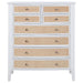 Create ample storage in your stylish bedroom with a modern eight-drawer chest. Its coastal style is established with a cool white finish paired with natural rattan finish accents on its drawer fronts, offering compelling contrast and texture. Eight drawers include four small and four large, with black felt lining in the top drawers to add a touch of luxury and protection. The case features a gently bowed front that adds inviting energy to its silhouette. A roomy top is ideal for decor and personal effects, perfect for framed photos and a jewelry box.