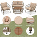 Bohemia-Inspired 4 Person Outdoor Seating Group With Removable Cushions, Conversation Patio Set With Wood Tabletop - Beige