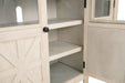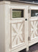 Whether your style is farmhouse fresh, shabby chic or country cottage, you’ll find this medium TV stand perfectly in tune. Its two-tone finish pairs a trendy textured antique white with a weathered gray for that much more quaint character. Charming elements include crossbuck adorned cabinet doors with glass inlays for peek-through flair. Ample adjustable shelving and cutouts for wire management nicely accommodate your media needs.