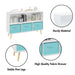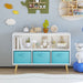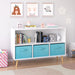Bookcase With Collapsible Drawers, Book Display Storage Cabinet Organizer - White / Blue