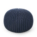 Bordeaux - Knitted Cotton Round Pouf Ottoman And Floor Cushion - Navy Blue