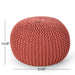 Bordeaux - Knitted Cotton Round Pouf, Versatile Ottoman And Cushion - Coral
