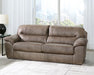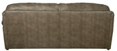 BRADSHAW is an extra-wide two-seat design featuring a decorative pub back and a faux leather fabric.