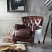 The Brancaster accent chair invites you to sit back and relax for hours on end. A timeless design, this armchair features vintage brown top grain leather upholstery with button-tufted accents, rolled arms, and tapered wood legs. Whether your decor leans traditional or transitional, or even modern eclectice, the tasteful style of this unusual piece will be perfect for any room.