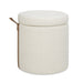 Brandy - Round Upholstered Storage Ottoman With Leather Accent - Flax White