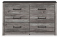 Alluring hues create an ambiance that just feels right. This 6-drawer dresser has a charming wood-like appeal enriched by a two-tone, textured look.
