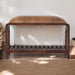 - Features: 100% Buffalo Hide Leather,100% Solid Mango Wood,Slatted Shelf,Chestnut Finished,Straight Feet,Space-Saving
