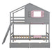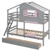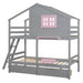 Twin Over Twin Bunk Bed With Drawers, Playhouse Inspired, Storage Box, Shelf, Window, And Roof - Gray