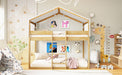 Sturdy Construction & Unique Design: Crafted from solid pinewood and high-quality plywood, this bed ensures exceptional stability. Reinforced slats provide excellent weight capacity, while playful house-shaped elements add a whimsical touch to enliven any room.