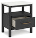 Transform your bedroom with this nightstand. With its clean lines and replicated marble top, it exudes a minimal and sophisticated boho style. Built-in lighting and charging capabilities add simplicity and ease to your everyday tasks. Tailor your space and create the perfect environment for sweet dreams.