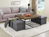 - Looking to style your living room all the while keeping it decluttered? The Caitlin collection is just the set for you! The Caitlin collection manages to be stylish and compact. Featuring a stunning wooden tabletop and metal frame, this coffee table is sure to become the envy of your peers. Keeping your living space clear of clutter has never been easier with the included storage stools. Invite your friends and family for a cup of coffee and enjoy chatting as they complement your sleek, minimalist, and functional coffee table.