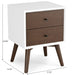 Caroline - Mid-Century Modern Style White Night Stand 2 Drawer - Dark Brown / White