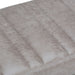 - Features solid wood framed driftwood color ottoman base and legs with quilted vertical stitching