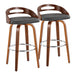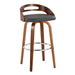 Cassis - Mid-Century Modern Fixed Height Barstool With Swivel With Round Footrest (Set of 2) - Walnut / Gray
