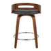 Cassis - Mid-Century Modern Fixed Height Counter Stool With Swivel With Round Footrest (Set of 2) - Walnut / Gray