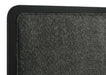 Tailored drama abounds in this modern bed with an upholstered headboard. Its crisp black finish pairs perfectly with charcoal fabric to create a deep, bold focal point for your bedroom. The bed boasts a tall headboard and low footboard, offering airy, open personality. Rounded corners complete the look, providing a softened effect for its overall silhouette. The bed is complete with levelers on its legs, allows for compensation for uneven flooring to ensure stability.