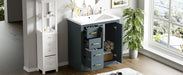 Bathroom Vanity With Ceramic Sink Combo, Frame Bathroom Storage Cabinet, Freestanding Vanity Set With 3 Drawers & Soft Closing Doors - Blue