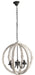 6 Light Wood Chandelier, Hanging Light Fixture With Adjustable Chain For Kitchen, Bulb Not Included - White