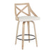 - Stylish Design: The Charlotte Counter Stool enhances any dining area with its elegant design, featuring a distinctive X-shaped accent on the backrest. Its white washed wood and fabric upholstery blend seamlessly to offer a transitional look that complements both traditional and farmhouse styles.
