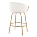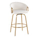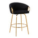 - Modern Design: The Claire Fixed-Height Counter Stool boasts a chic modern style with a unique design perfect for contemporary bar areas. It features a rounded low backrest, sleek gold armrests, and a gold metal frame.