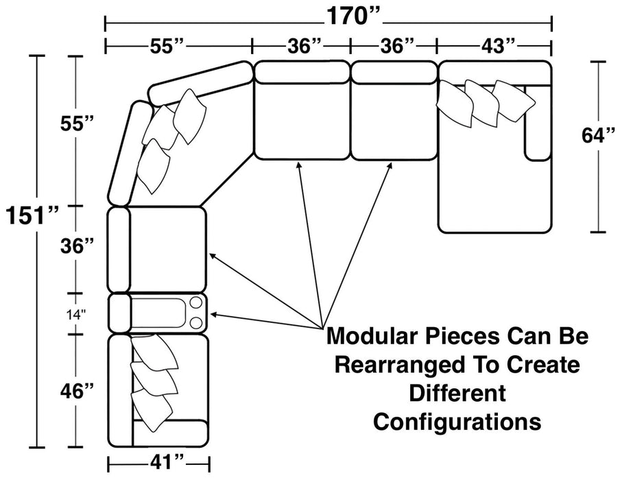 Como - 5 Piece Italian Leather Match Reclining Sectional