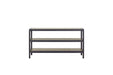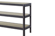 • Design Features: The table incorporates metal insets on all three shelves, adding an industrial touch to its softer modern design elements.