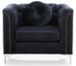 - Button Tufting Inside Arms and Back - Adds comfort and style to the design.