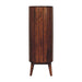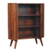 - Cortez Chestnut Open Cabinet - This simple and modern cabinet is made from 100% solid mango wood in a chestnut finish and has nordic style legs, its minimalist design can fit into any type of living space. Storage space is provided with 3 open shelves which can be used for placing books, magazines, or even displaying a ornament or candle.