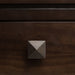 • Contemporary design includes floating square edged top, square knobs with peaked top and square tapered legs.
