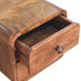 - Curved Wall Mounted Bedside - Inspired by our curved range, this minimalistic wall-mounted unit has been constructed from 100% solid mango wood in a finish and features 2 drawers that feature shiny knobs. This piece is perfect for storing any bits and pieces you wish to keep close by before bedtime. Its neat and clean design can easily be mounted on the wall without the fuss of any legs. Caution! Do not sit on the unit.