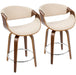 Curvini Mid-Century Modern Fixed Height Counter Stool With Swivel (Set of 2) - Walnut / Cream