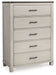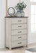 Make a farmhouse-inspired statement with this chest of drawers. Beautifully crafted to stand the test of time, the planked effect and clean two-tone finish lend a relaxing vintage feel. The felt-bottom top drawer adds a touch of luxury for the ultimate tasteful bedroom.