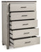 - 5 smooth-gliding drawers with fully finished interiors and metal ball-bearing side glides; top drawer with felt bottom