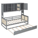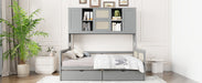 Full Size Wooden Daybed & Twin Size Trundle, And All In One Cabinet And Shelf - Gray